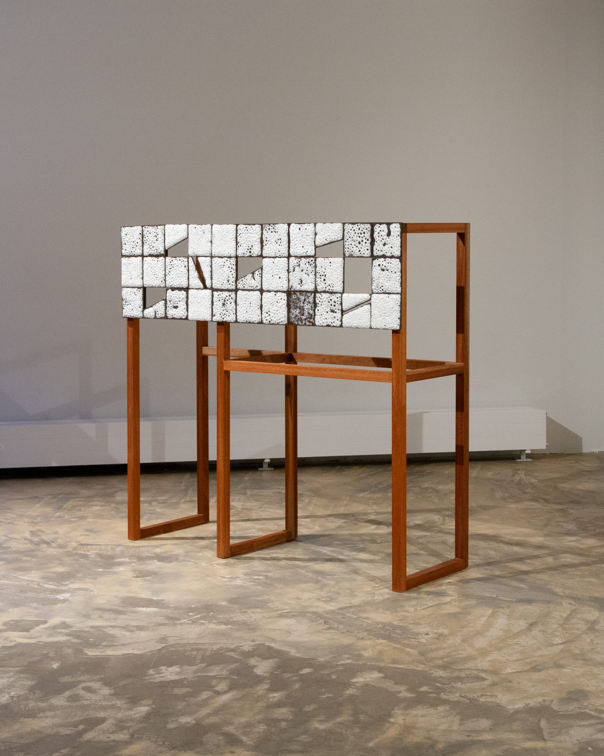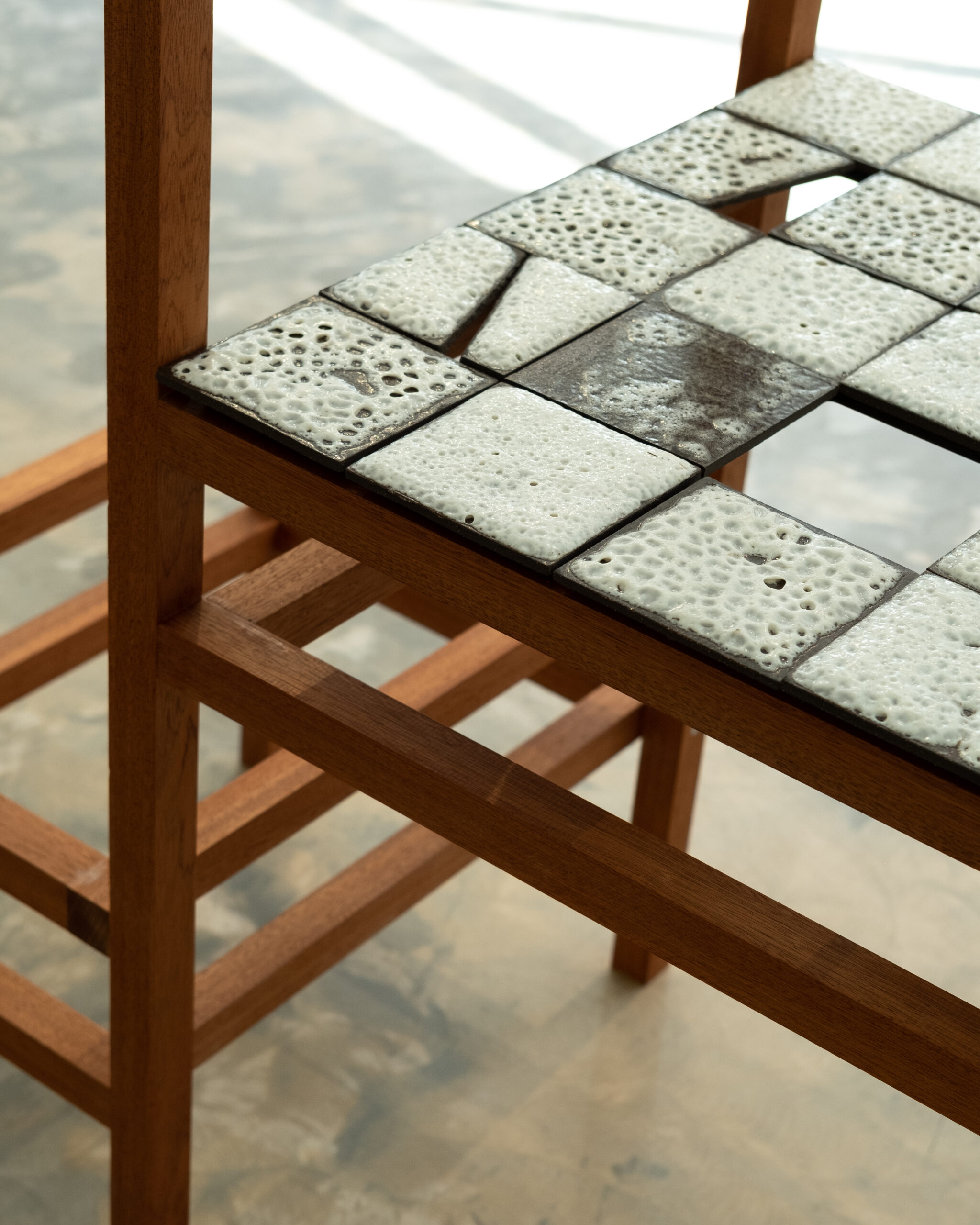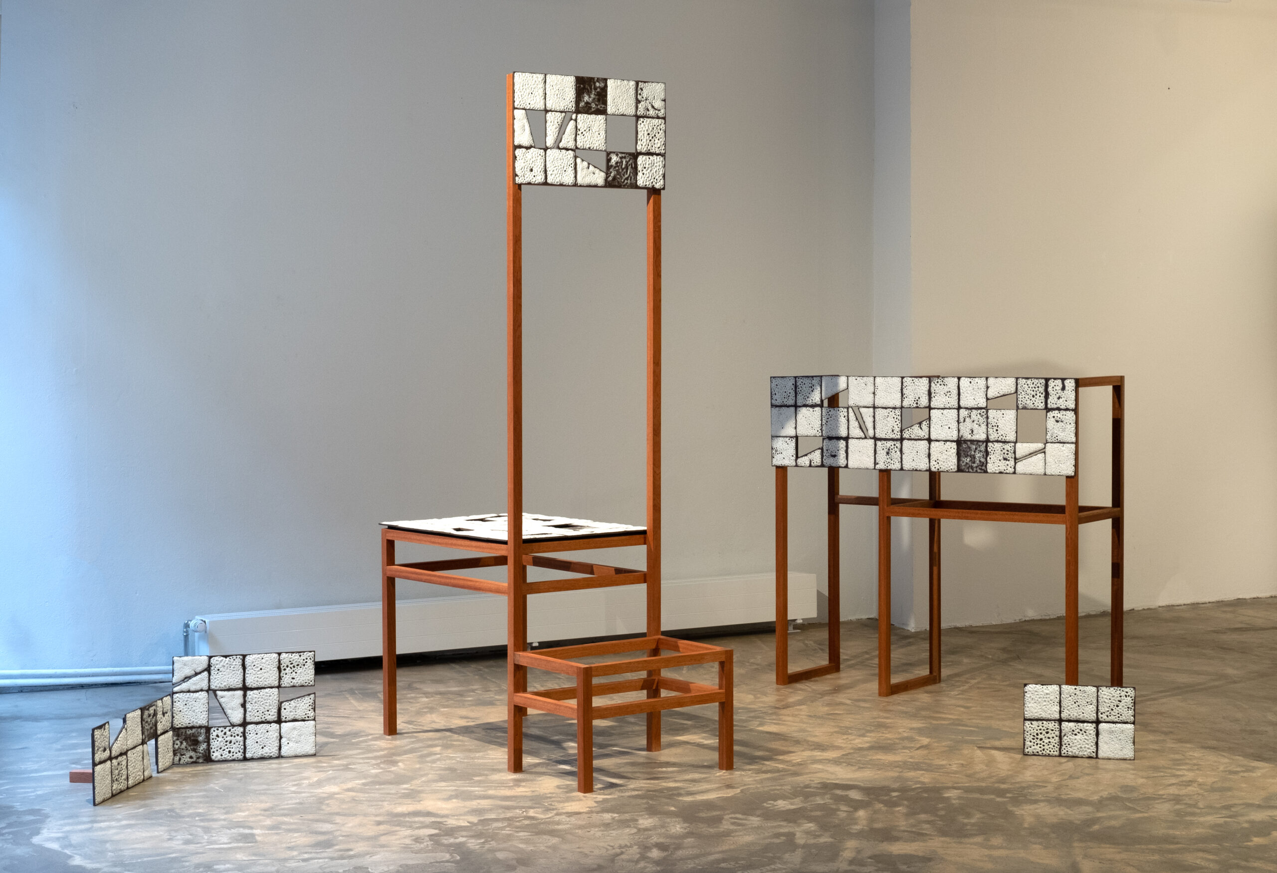 The installation ‘It Takes Two Hands to Make a Home’ is a video installation encompassing two main elements: hand-crafted ceramic tiles and video making. It presents different videos in varied durations mapped on ceramic screens in varied sizes. Noee, a female designer, uses archival materials depicting women’s labour from varioustimes and locations, including her family archive. The installation challenges the traditional, direct way of viewing imagery, and therefore prompts a re-evaluation of the nature of memories and the reliability of the archive as a source. It poses questions surrounding concepts such as home, house, labour, and women’s representation, rather than striving for clear answers.