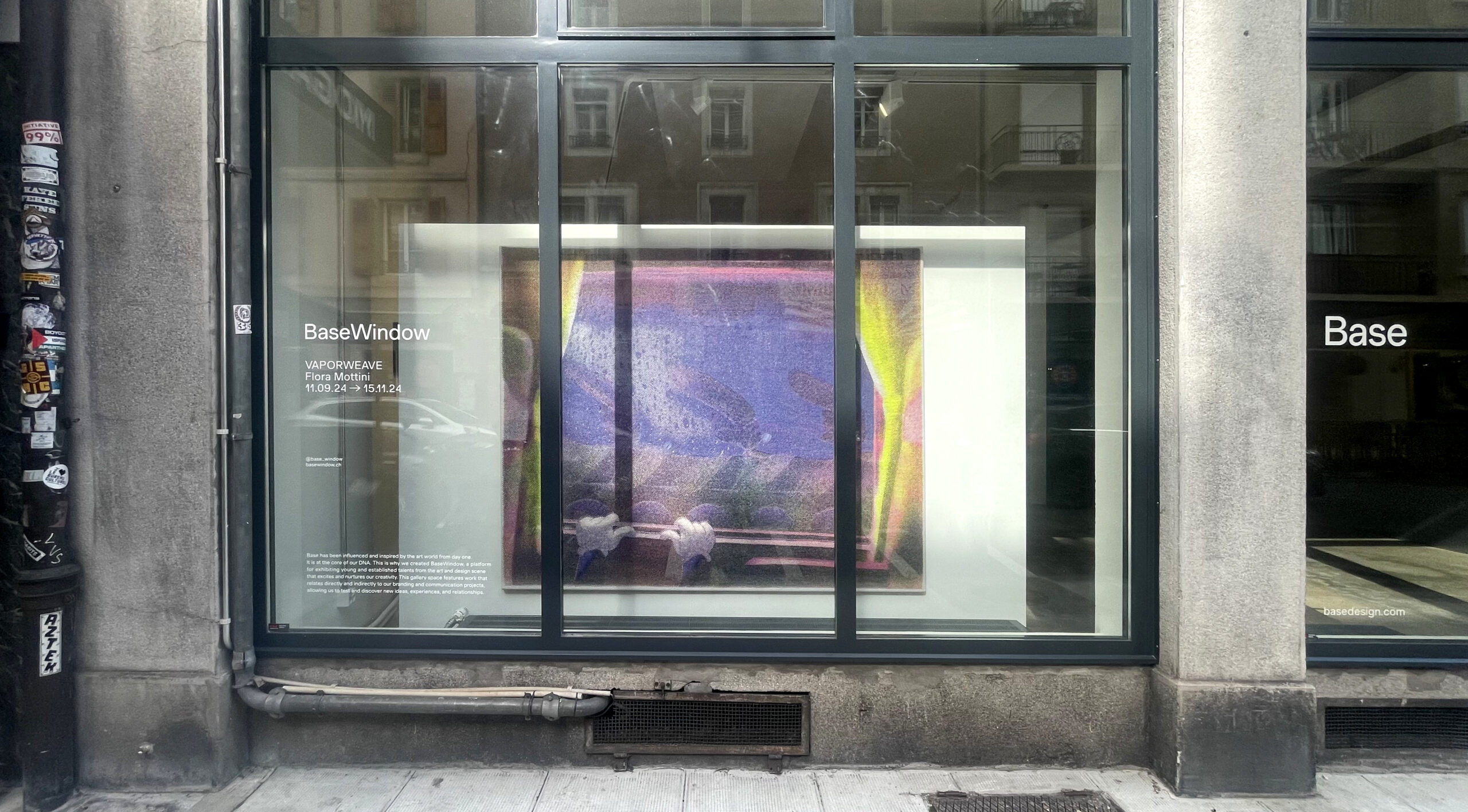 For her exhibition Vaporweave, Flora Mottini is presenting around thirty risography prints from her recent work and a large Jacquard weave from this series. The dots and lines intertwine and overlap on paper or fabric to offer visitors dreamlike genre scenes infused with twentieth-century transatlantic popular culture. Flora Mottini’s work immerses the viewer in a universe that is at once pop, troubled and psychedelic. Each work invites the viewer to cross an invisible boundary, lose themselves in the details of the motifs and discover the subtle nuances of color that are gradually revealed.